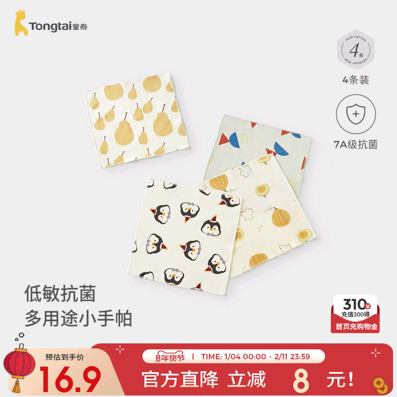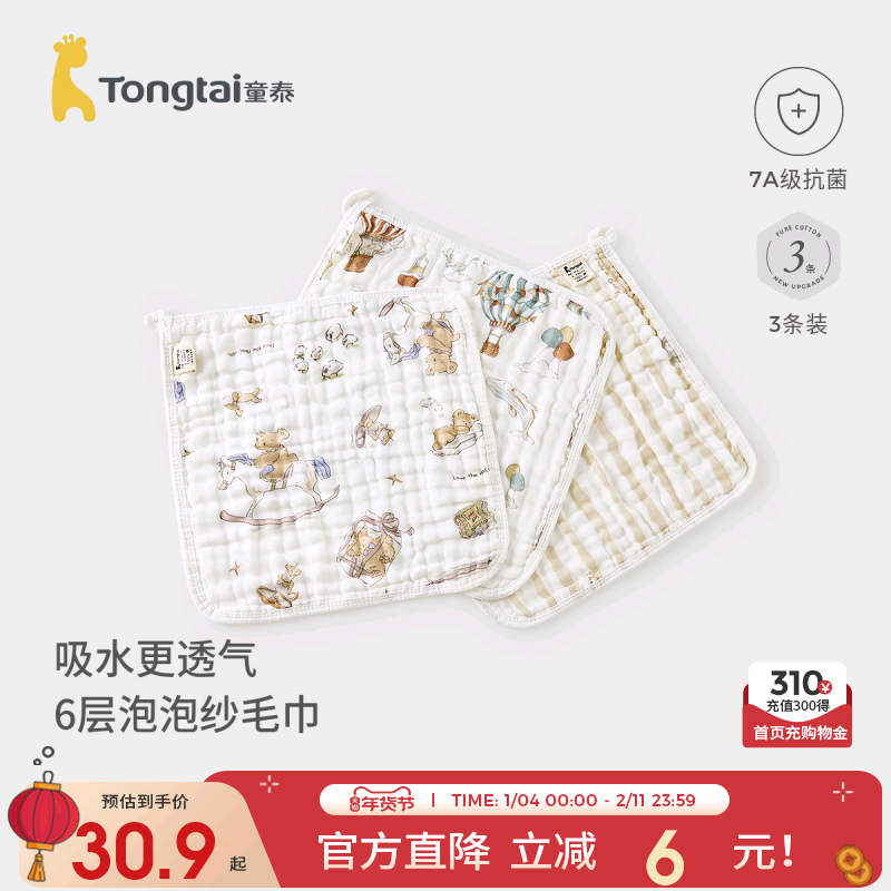 童泰婴儿毛巾纯棉宝宝口水巾男女童6层泡泡纱擦脸巾儿童透气方巾