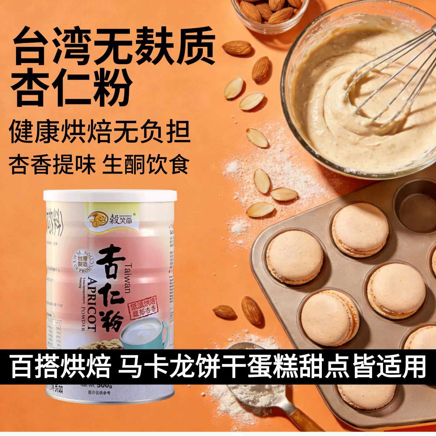 谷笑爷台湾烘焙杏仁粉纯正香浓甜南杏仁无添加蔗糖生酮马卡龙代餐