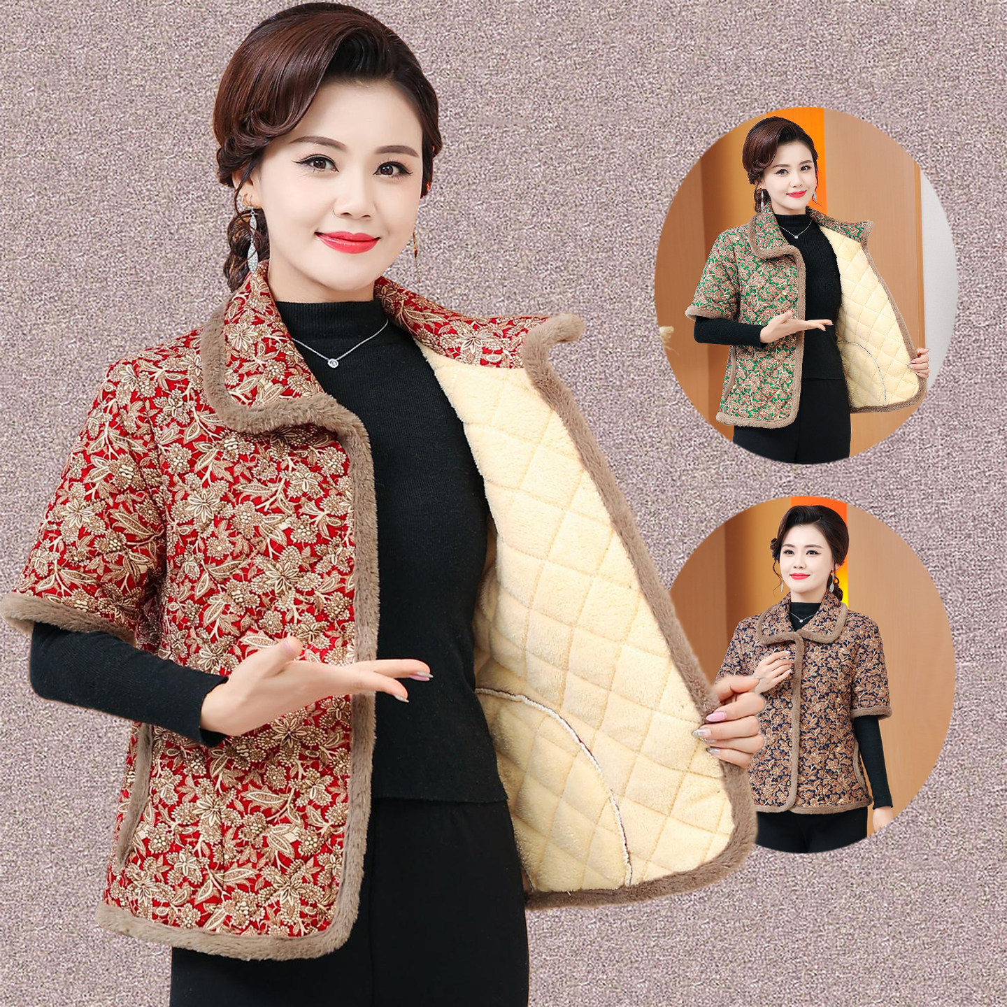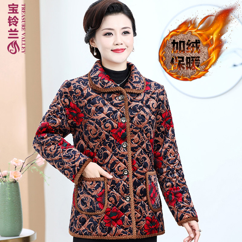 妈妈装秋冬新款国风洋气棉衣加绒保暖小棉袄中老年女复古棉服外套