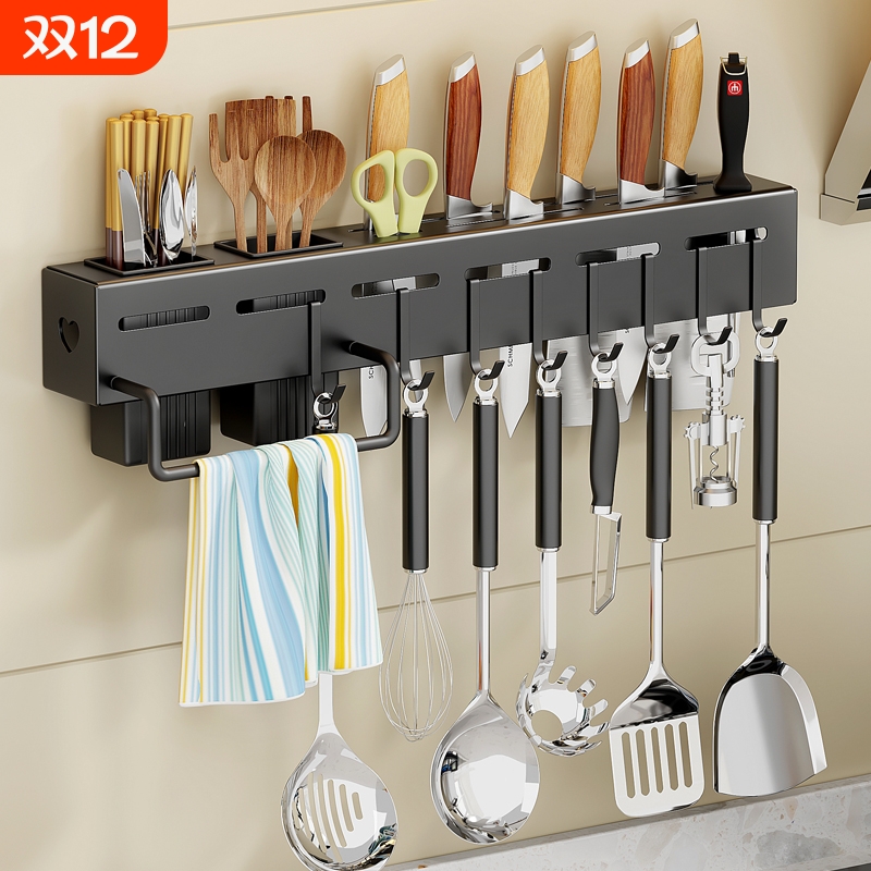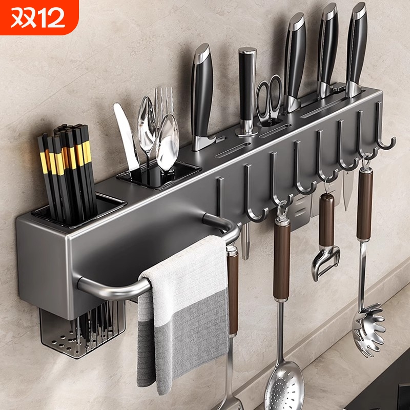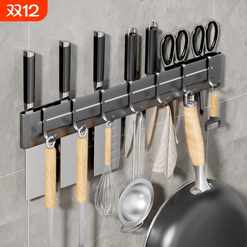 太空铝厨房刀架壁挂免打孔多功能厨房挂钩刀具厨具收纳架菜刀架子