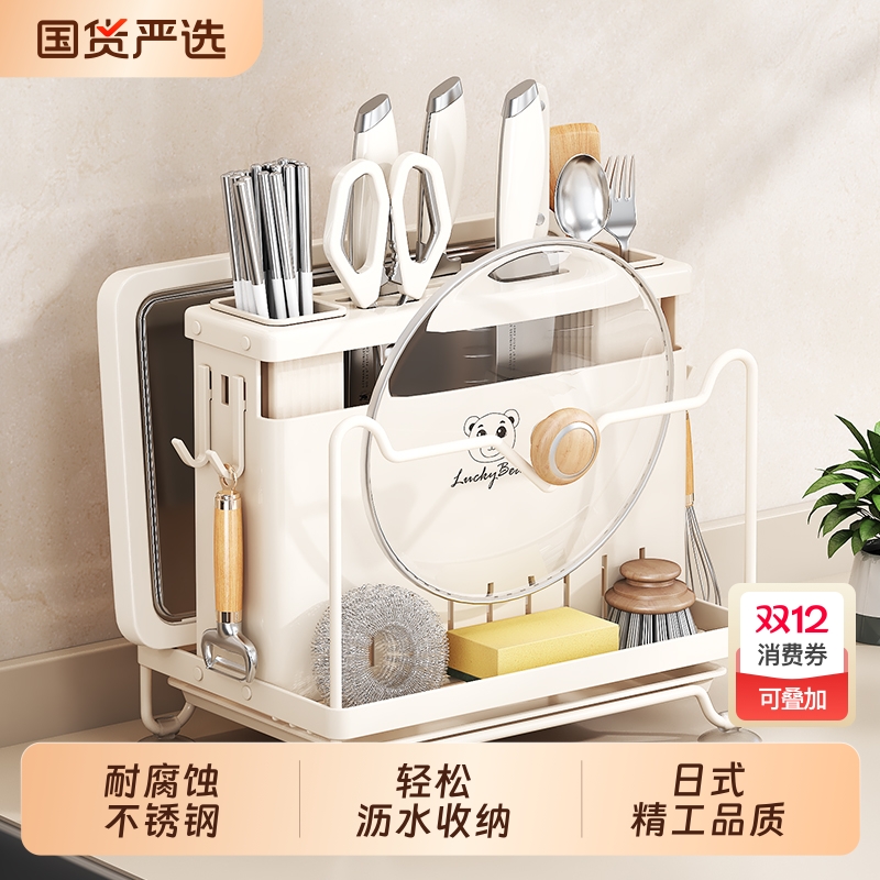 奶油风刀架置物架厨房壁挂式多功能菜刀勺子筷子筒一体刀具收纳架