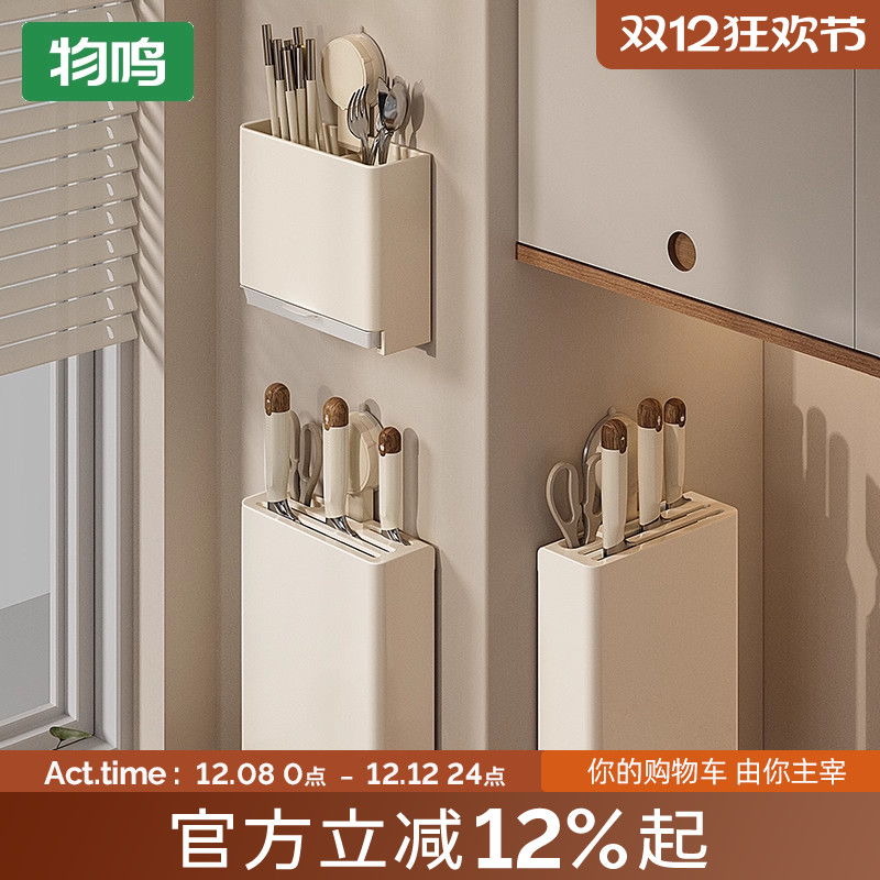 吉百居厨房刀架壁挂式厨具置物架多功能免打孔筷子刀具一体收纳架