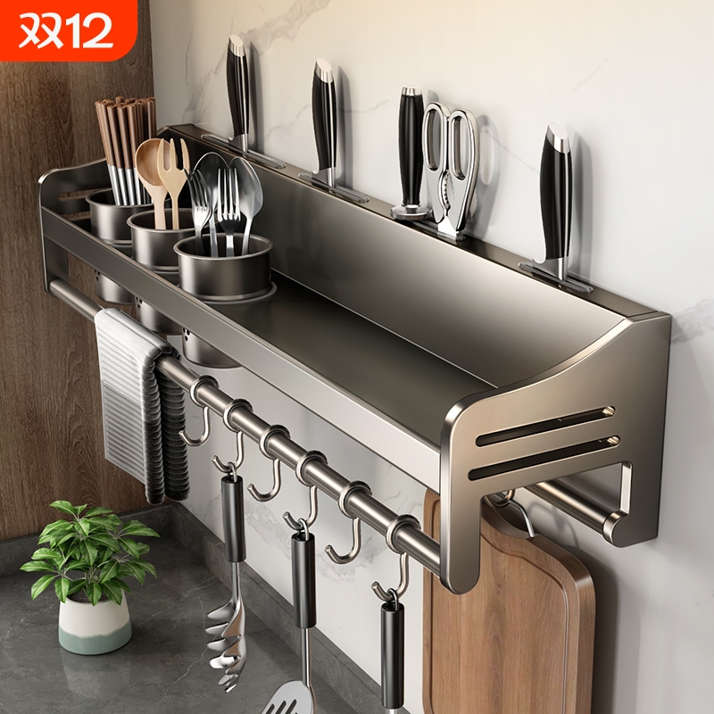厨房刀架壁挂式太空铝筷笼置物架家用多功能放刀具刀座菜刀收纳架