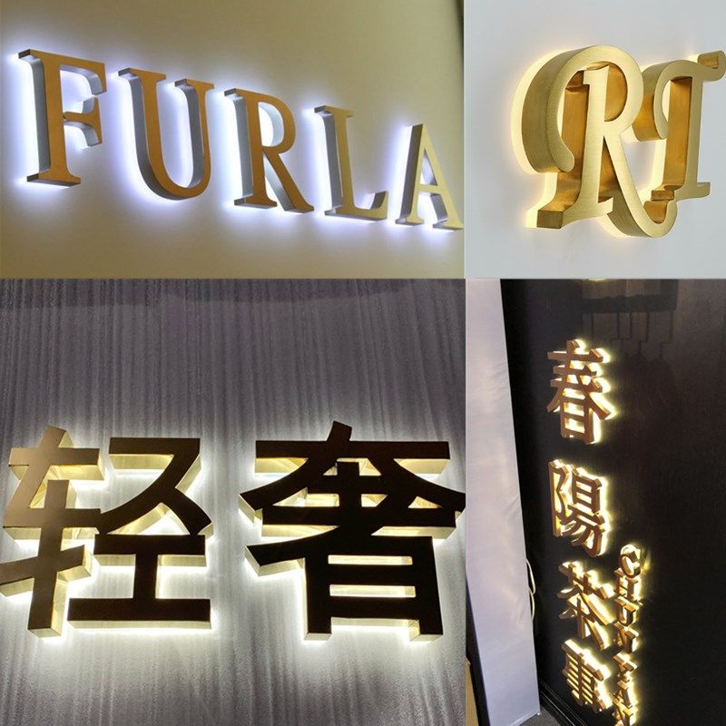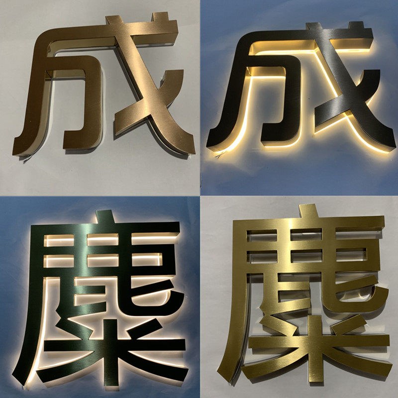 拉丝不锈钢字制作精品金字钛电镀精工背发光字门头招牌广告字定做