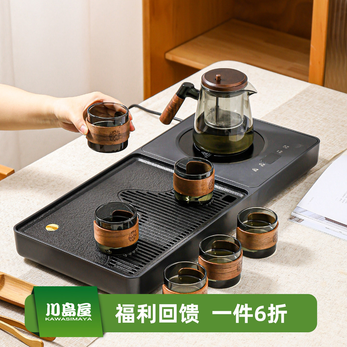 川岛屋茶盘全自动套装一体2025新款家用多功能烧水茶具沥水盘茶台