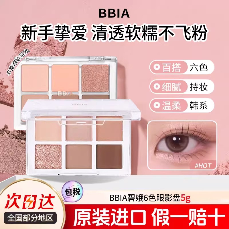 BBIA碧娥珠光哑光6色眼影盘大地色初学者日常淡妆氛围感韩国彩妆