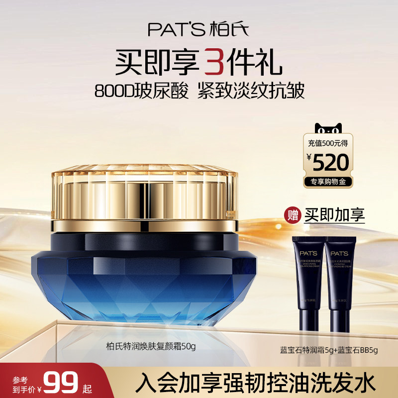 柏氏蓝宝石玻尿酸面霜抗皱紧致湿敷保湿滋润补水乳套装官方旗舰店