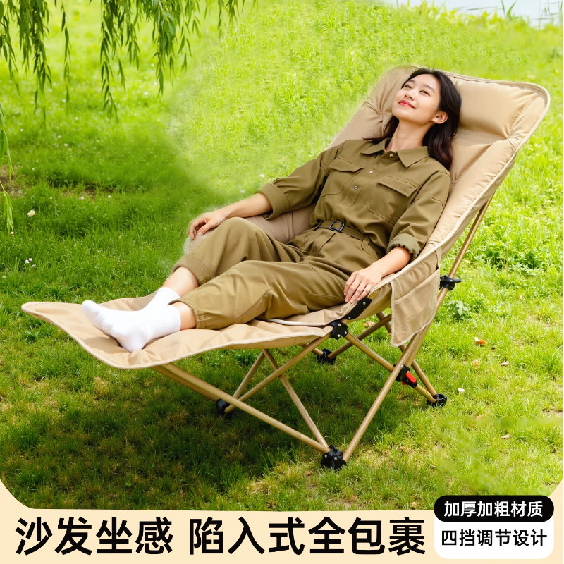 躺椅户外折叠椅露营椅子便携月亮椅可调节办公室午休沙滩椅钓鱼凳