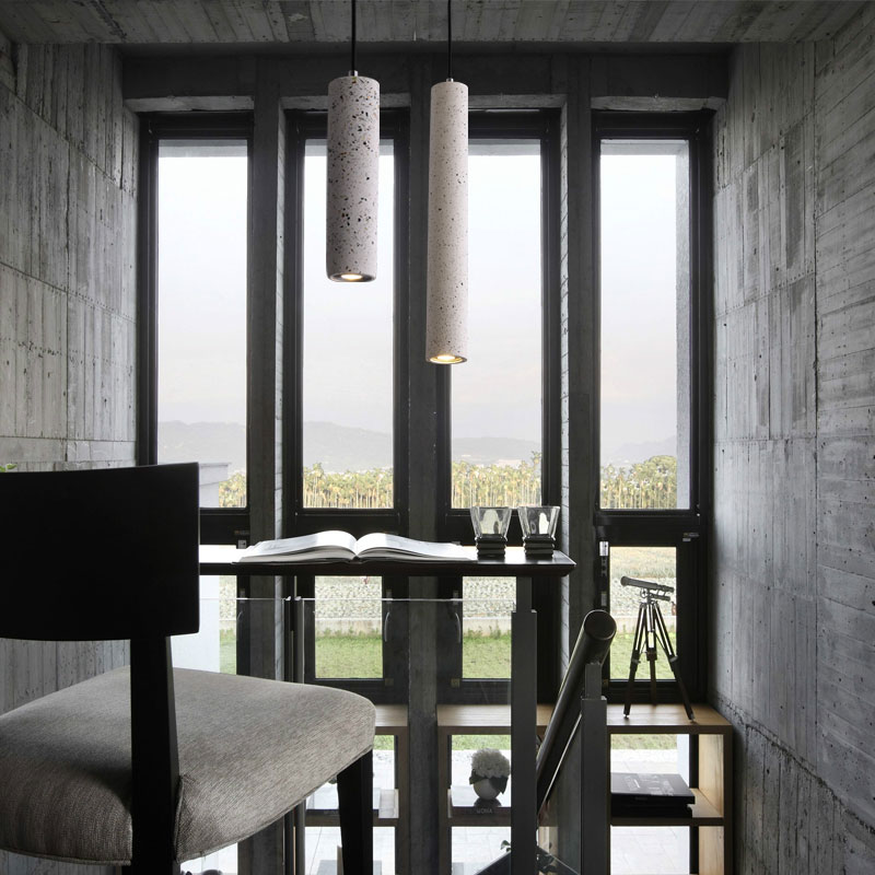 侘寂风混凝土水泥吊灯极简圆柱长条餐桌吧台装饰卧室床头照明灯具