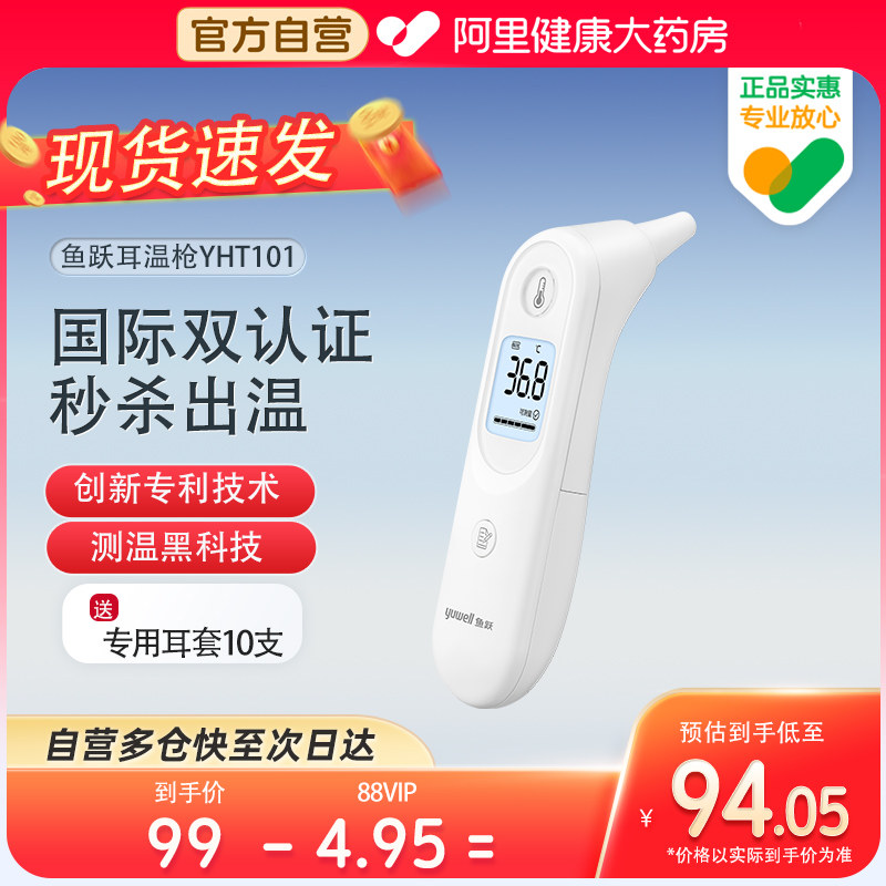 鱼跃红外线电子体温计耳温枪家用儿童婴儿发热发烧预警温度计医用