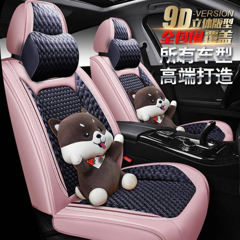 汽车坐垫四季通用全包围卡通亚麻布艺朗逸速腾高尔夫飞度女神座套