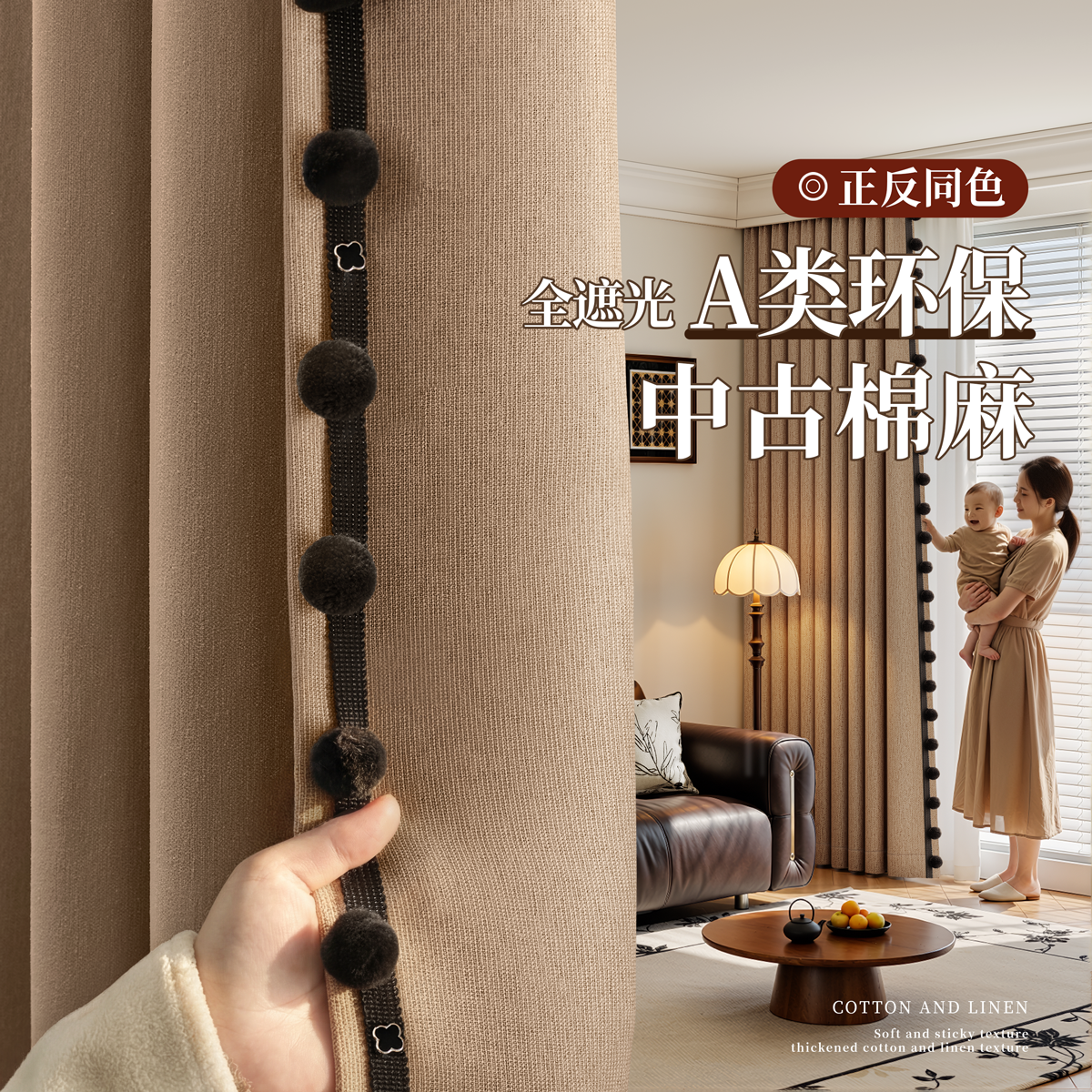 隔音窗帘全遮光卧室棉麻客厅2025柯桥新款加厚遮阳防晒隔热高级感