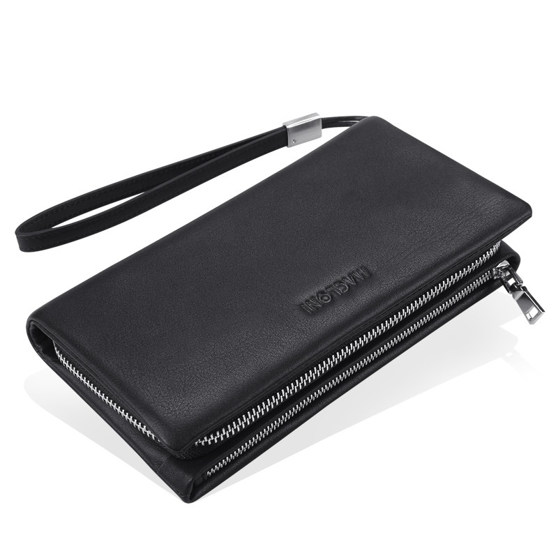 七匹狼手拿包男真皮男包双拉链大容量钱包大牌手包男士休闲潮皮包