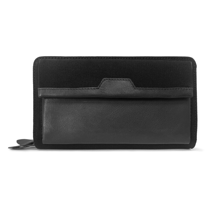 外贸新款男士防水油蜡布拉链包长款真皮包头层牛手抓包多功能长包