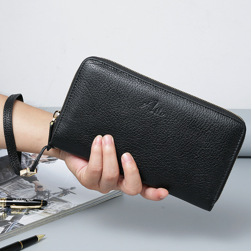真皮男士手拿包休闲手抓包男高级感商务手包大容量长款钱包软皮包