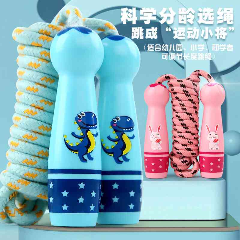 儿童跳绳初学者幼儿园可调节跳绳儿童木制手柄玩具棉绳小学生跳绳