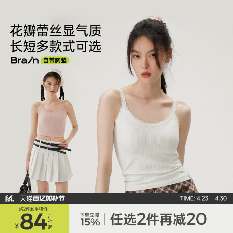 半练白色蕾丝吊带背心女新款带胸垫打底内搭免穿文胸美背上衣外穿