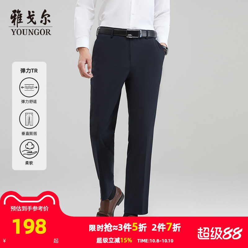 【弹力易打理】雅戈尔男士黑色西裤秋冬官方商务中年宽松直筒长裤
