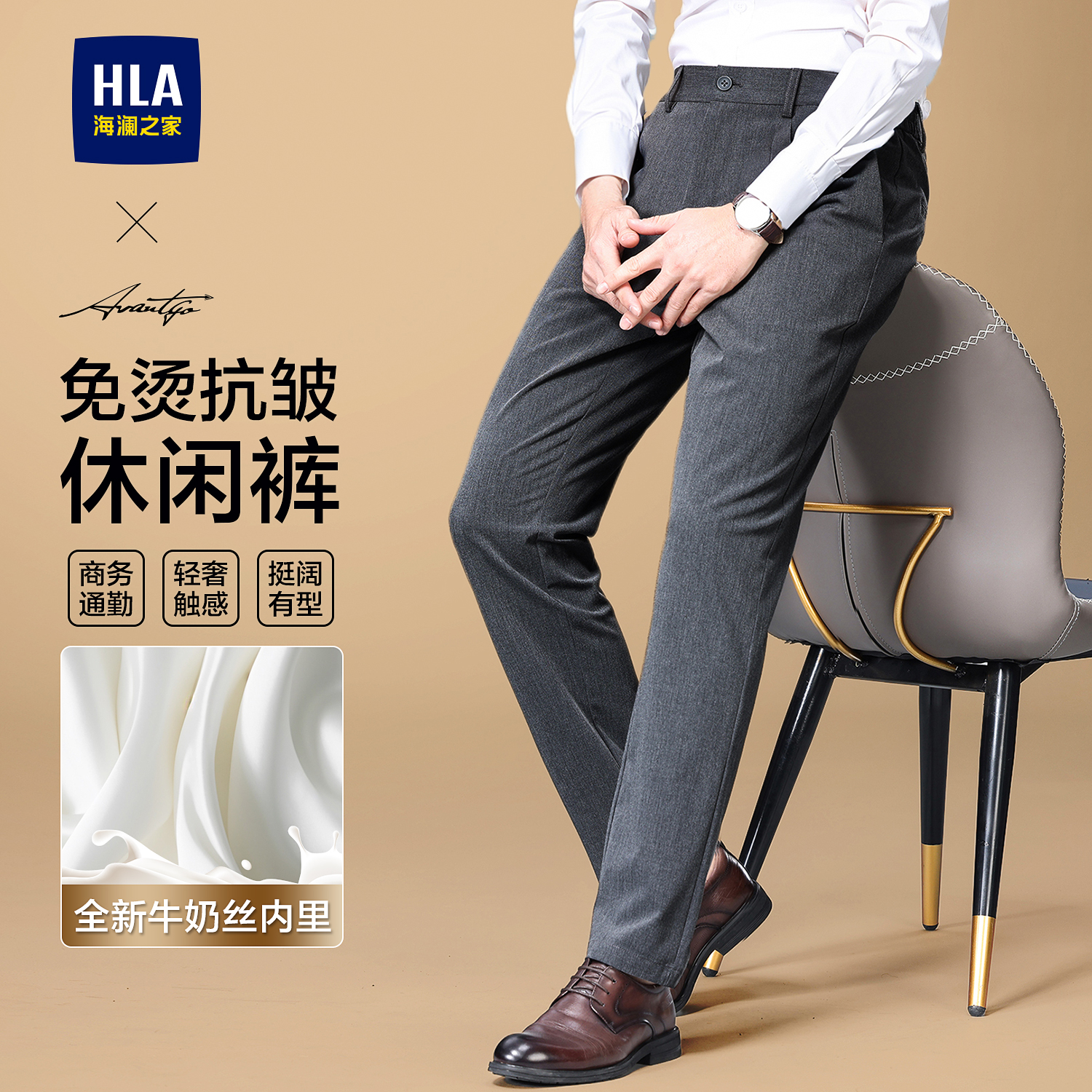 海澜之家轻商务高端休闲裤男士25秋冬新款含羊毛弹力修身直筒西裤