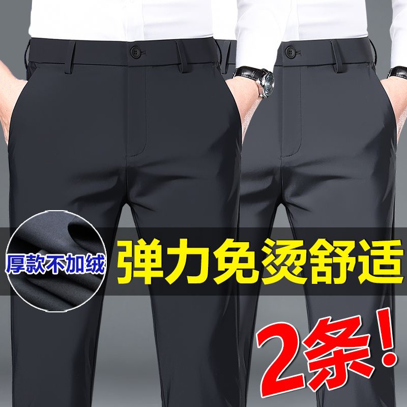 秋冬厚款高弹男士休闲裤中年男裤新款直筒商务西裤免烫抗皱长裤子