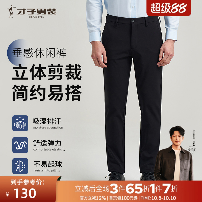 才子男装商务休闲裤男2025秋冬复合加厚新款西裤弹力修身垂感裤子