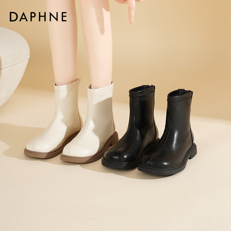 达芙妮短靴女款2025新款秋冬弹力瘦瘦靴子百搭平底单靴厚底马丁靴