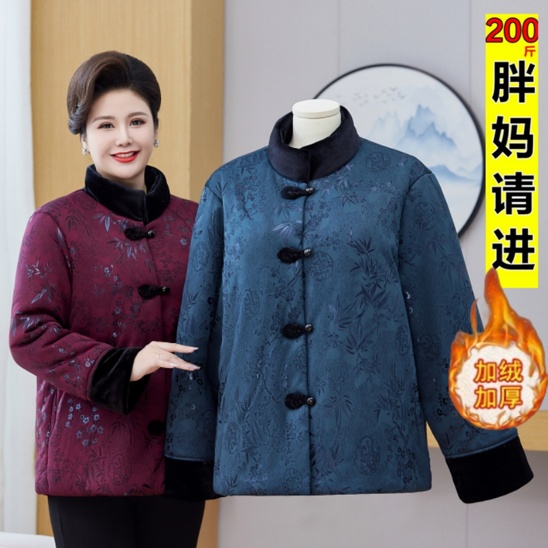 加绒加厚妈妈棉袄冬装外穿棉服中老年女棉衣防寒保暖老年奶奶外套