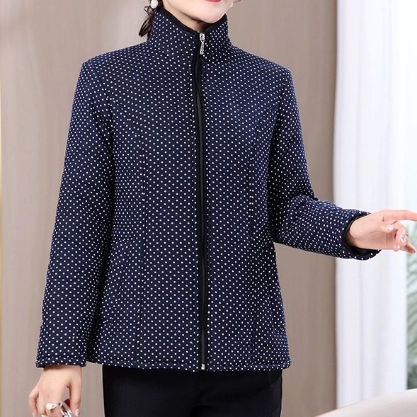 中老年女棉衣秋冬新款加棉加厚外套棉袄时尚百搭小圆点棉衣妈妈装
