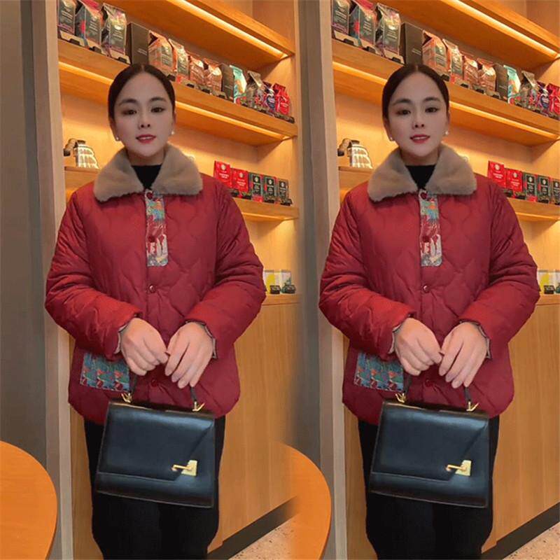 中老年羽绒棉服女短款妈妈冬装加厚大码中老年加绒保暖女妈妈冬装