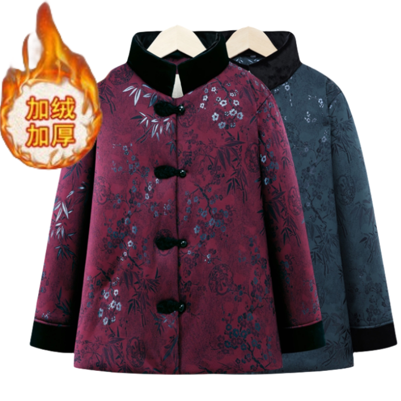 中老年人冬装女加绒加厚棉衣60岁奶奶装唐装棉袄妈妈短款外套老人