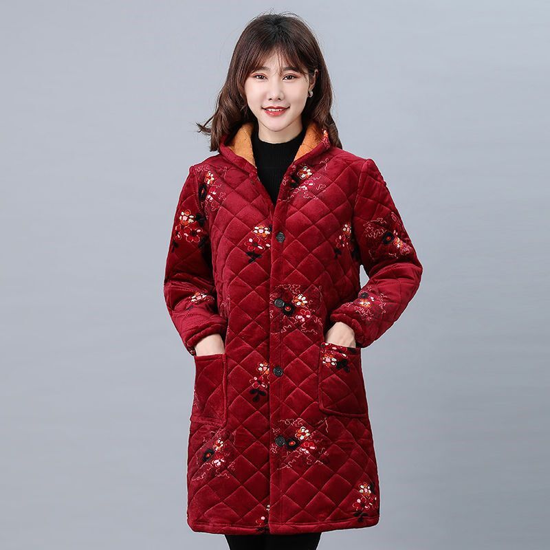四川省服中老年女棉衣加绒加厚罩衣妈妈中长保暖外套工作服款棉服