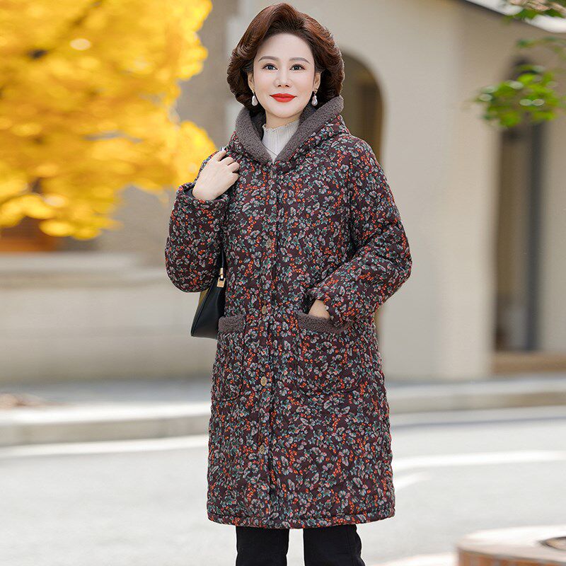 中老年女棉衣妈妈装冬季加厚棉服中长款中年女士时尚棉袄大码外套