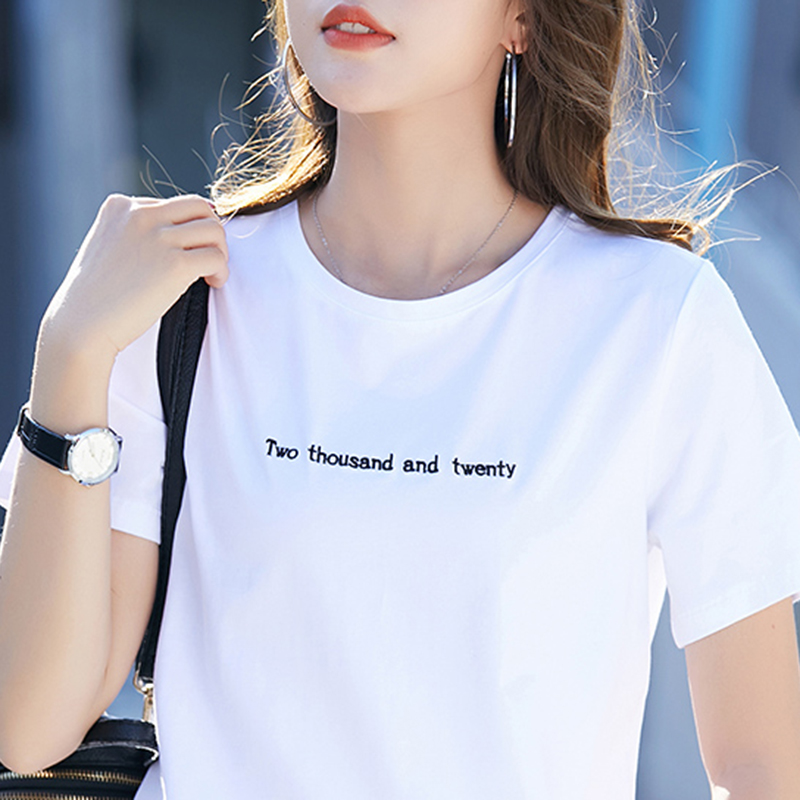 短袖t恤女夏装大码宽松字母刺绣休闲上衣40岁女士半袖纯棉汗衫T桖