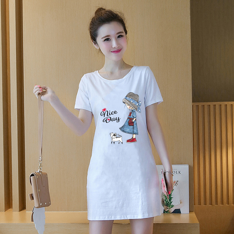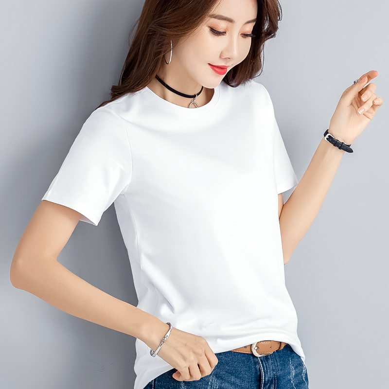 白色短袖中长款t恤女薄款夏装休闲打底衫t桖纯棉内搭圆领学生上衣