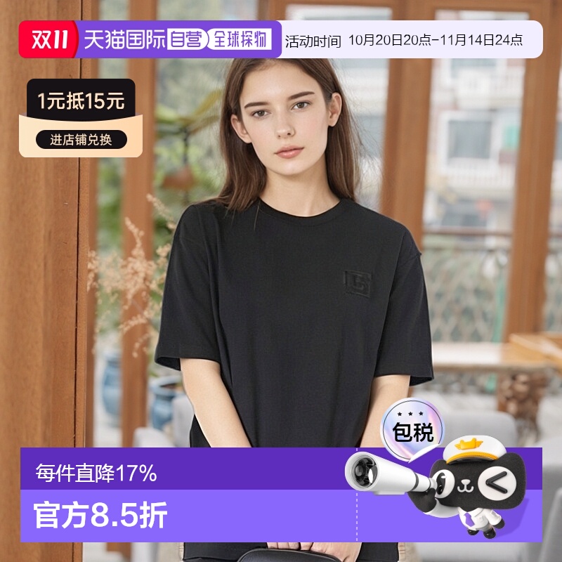 即墨黑色宽松短袖t恤女纯棉上衣新款夏季欧洲站洋气小衫欧货t桖