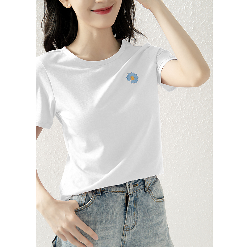 雾霾蓝短袖t恤女夏季新款百搭纯棉修身半袖打底白色体桖短款上衣