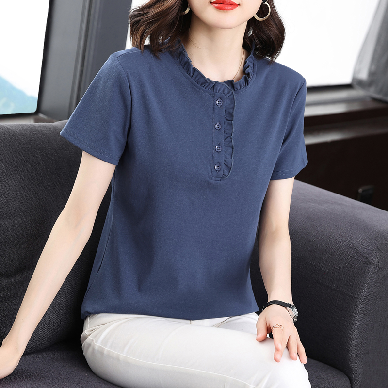 短袖t恤女2026年新款夏装上衣时尚纯棉中年妈妈洋气polo衫翻领t桖