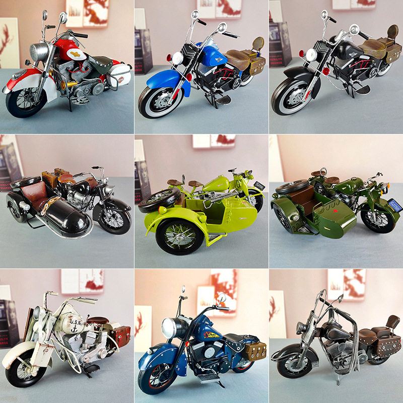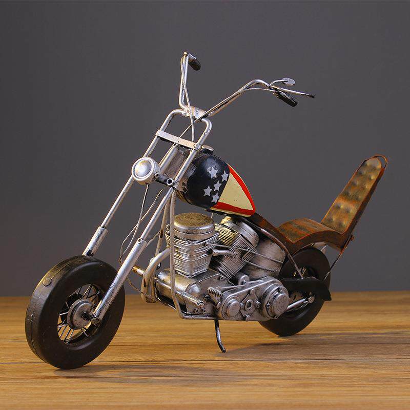 哈雷摩托车模型摆件复古做旧铁艺创意金属工艺品家居玄关办公桌面