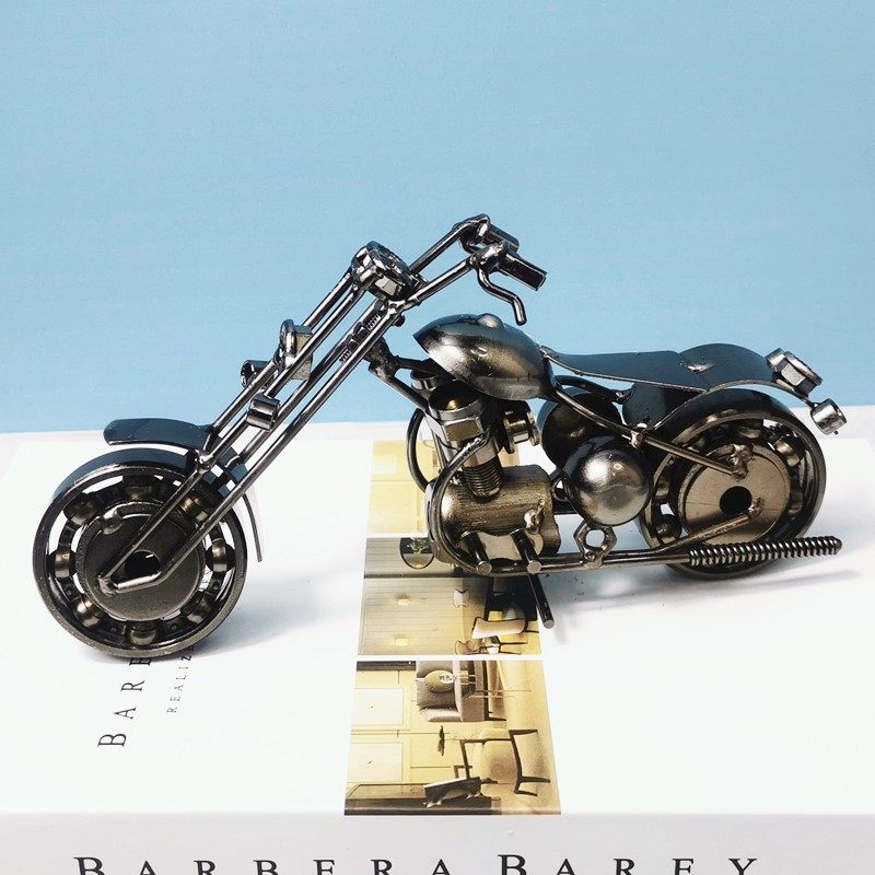 哈雷摩托车模型摆件复古工业风客厅铁艺金属机车男孩房间装饰礼物