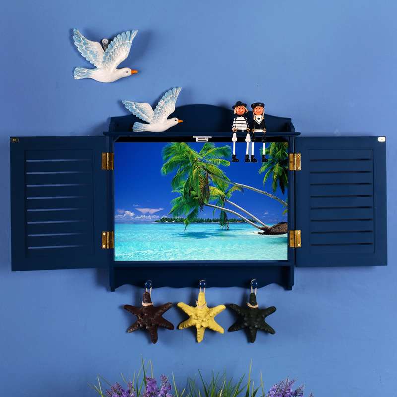 室内地中海风格蓝色百叶窗款客厅电表箱遮挡箱配电箱电表盒装饰箱