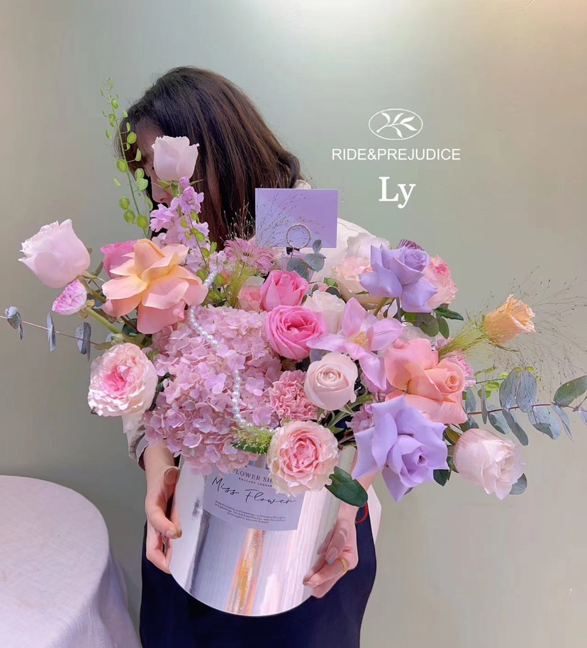 梦境花园-粉色系绣球玫瑰混搭温柔风抱抱桶-生日礼物福州鲜花速递