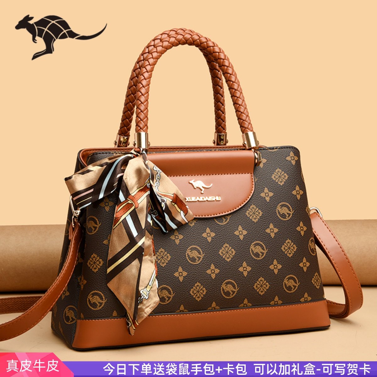 袋鼠品牌真皮包包2025新款大气送妈妈牛皮手提包时尚中年斜挎女包