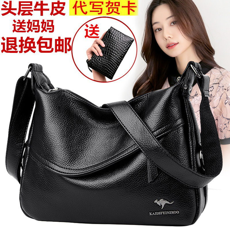 帝豪袋鼠真皮中年包包女新款百搭软皮大容量牛皮妈妈包单肩斜挎包