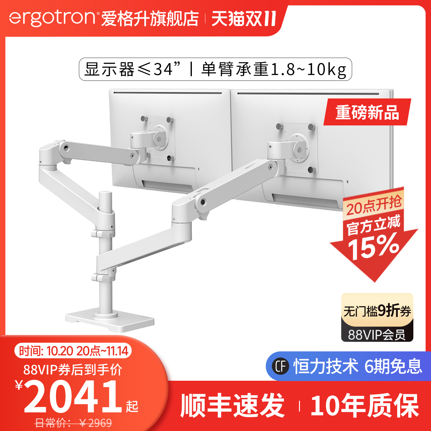 ergotron爱格升LX PRO叠加双屏双臂显示器支架桌面电脑升降机械臂