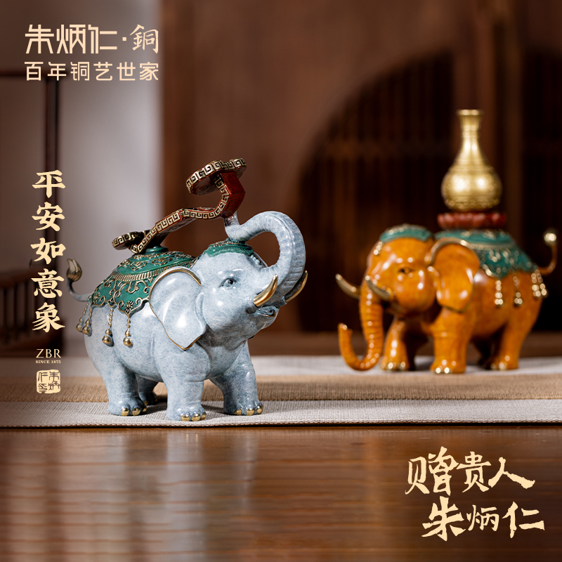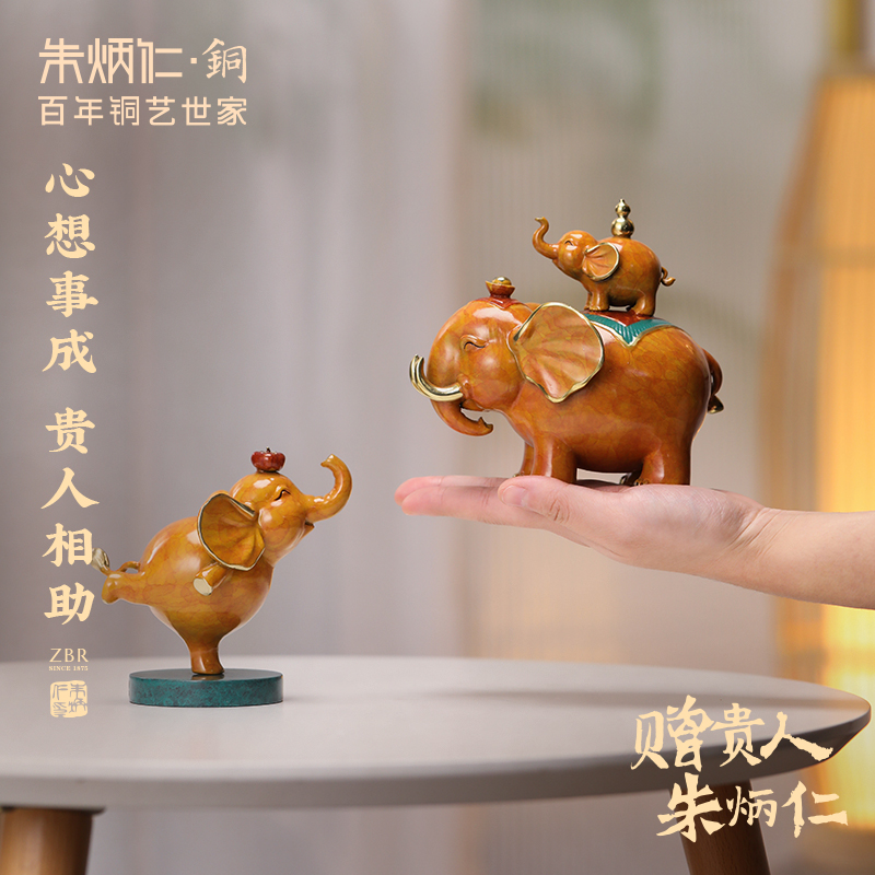 朱炳仁铜心想事成贵人相助吉祥铜象摆件客厅办公书房桌面装饰礼品