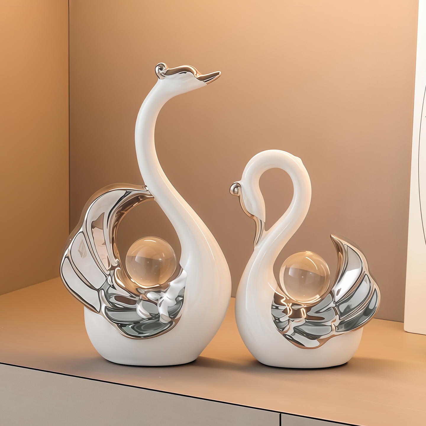 高级感水晶天鹅摆件轻奢高档电视柜酒柜餐边柜新人客厅玄关装饰品