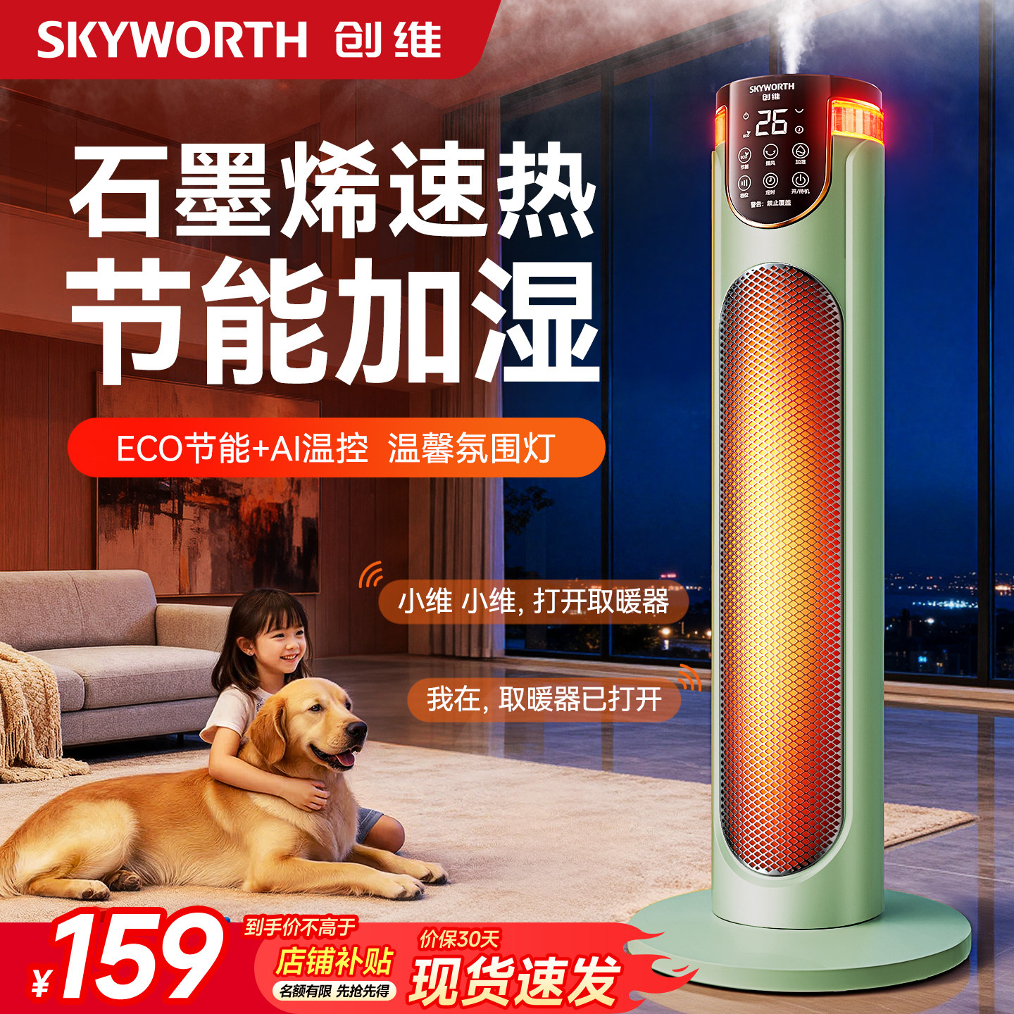 创维加湿款取暖器2025新款石墨烯电暖气智能电暖风小型家用暖风机