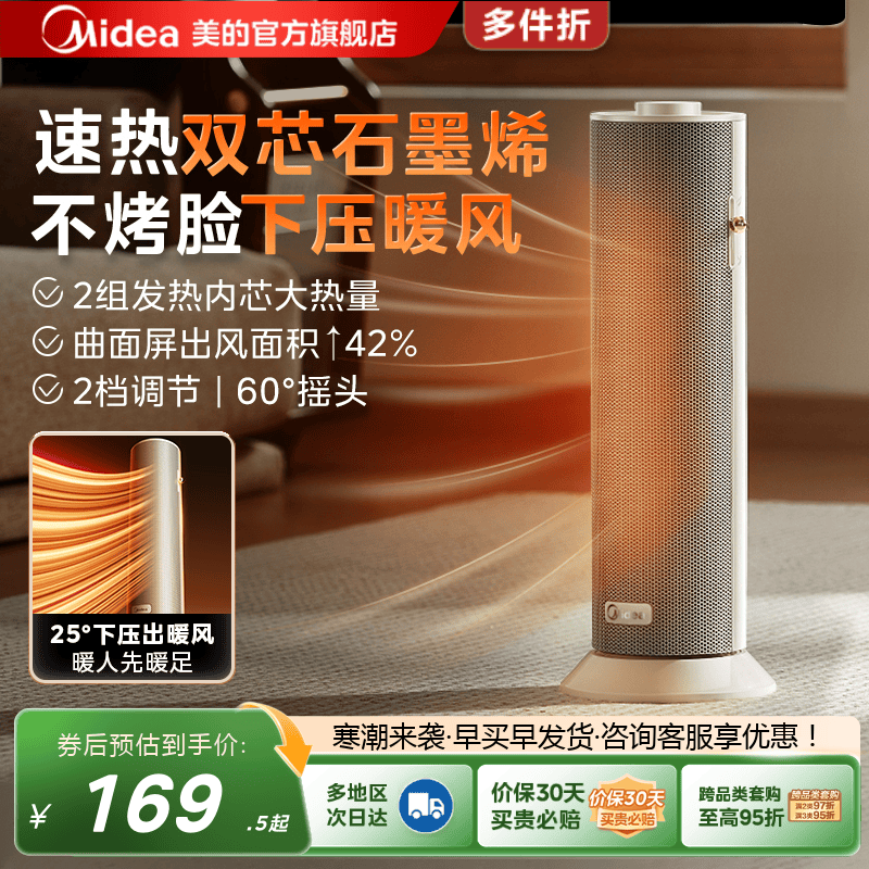美的高塔取暖器2025年新品加湿家用暖风机石墨烯电暖器取暖神器
