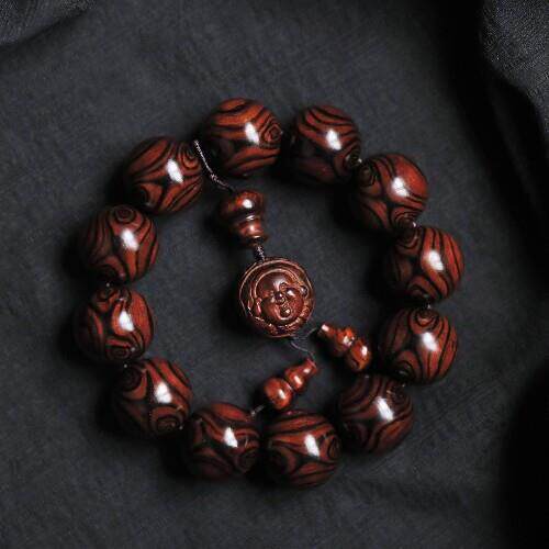 佑匠海南黄花梨手串2.0鬼脸对眼X纹佛珠手链木质文玩把件一物一拍