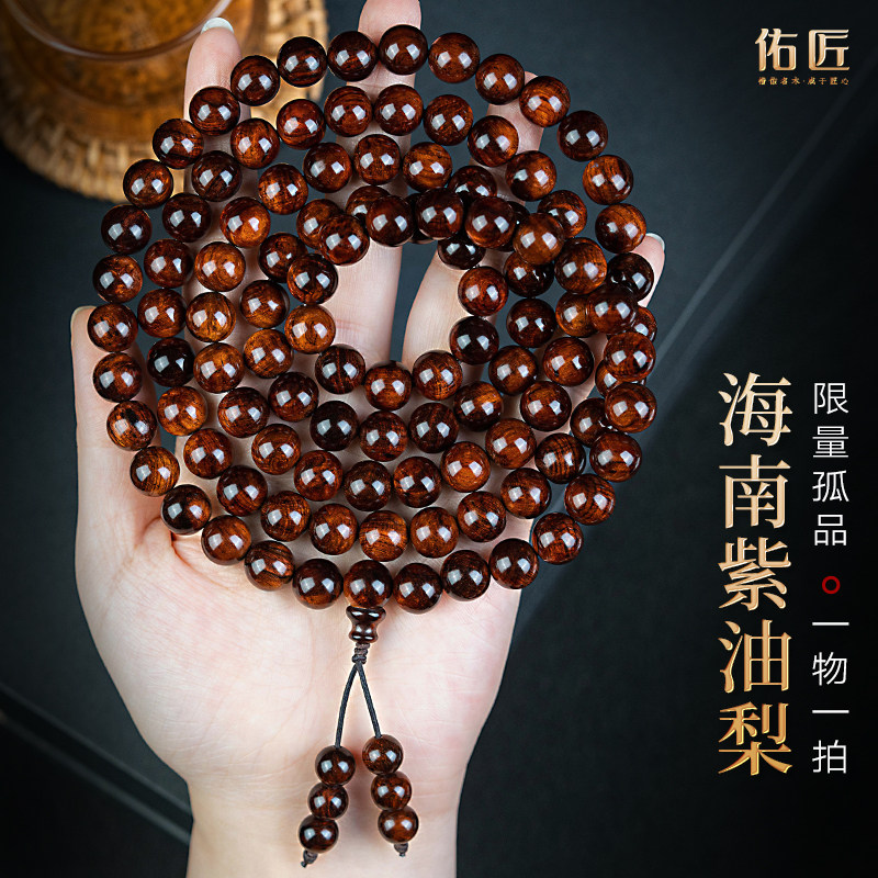 轻奢 高级紫油梨手串海南黄花梨108颗手链男女士佛珠文玩项链古风